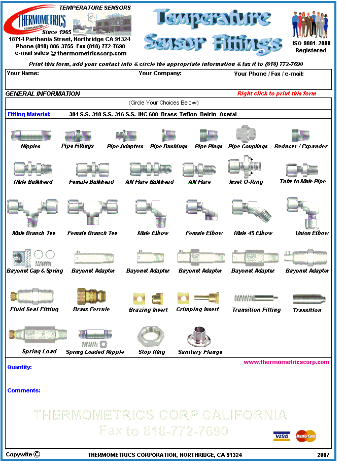 Fittings Order Form
